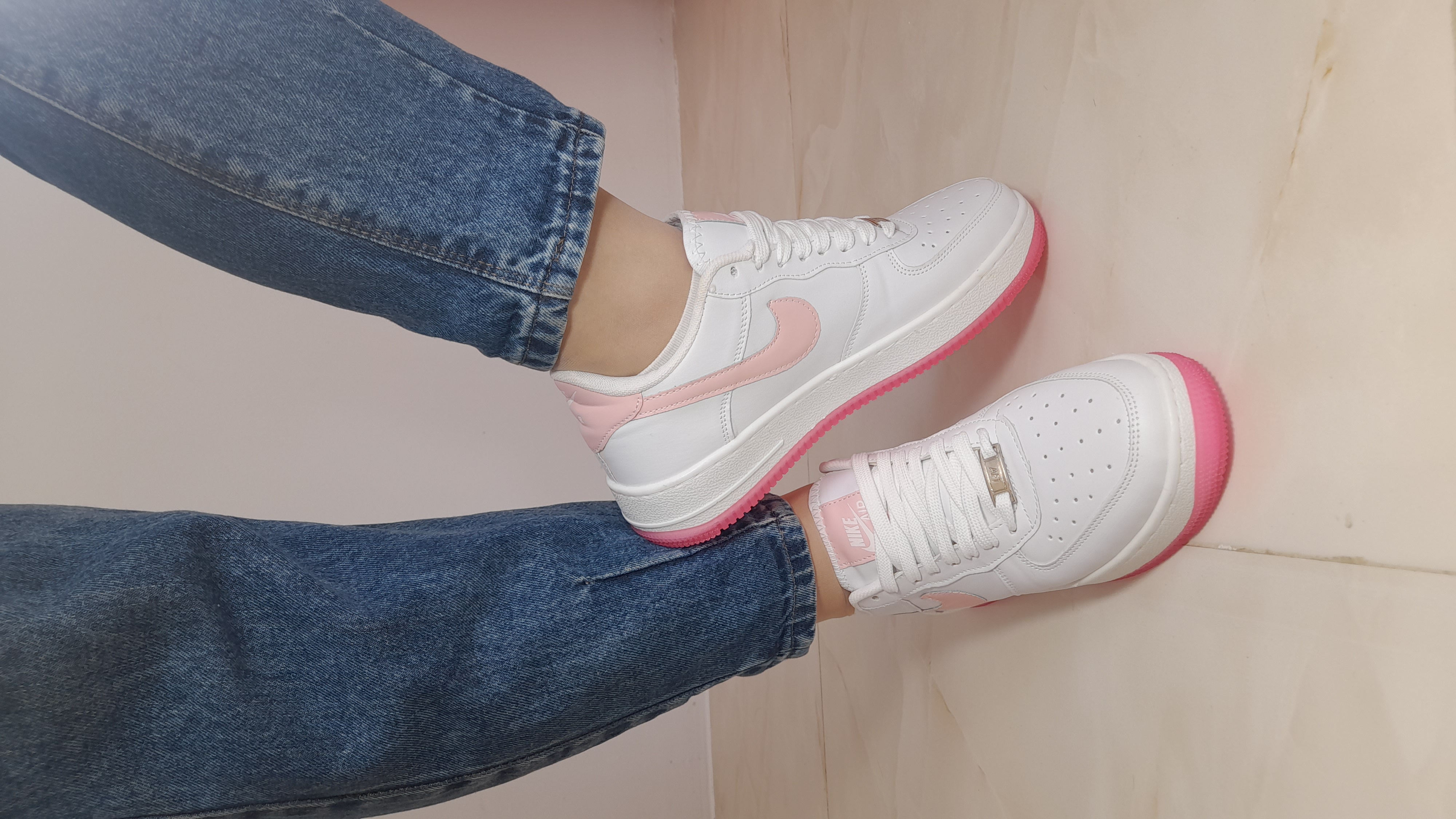 یکی از خوشگلترین نایک ایرفورس های دخترونه ای که دیدی. فوق العاده زیبا ،دخترونه، مناسب با هر استایل قرتی و ادایی فوق العاده با کیفیت قالب کتونی نایک ایرفورس زنانه کاملا استاندارد کتونی دوردوخت و تمیز کار شده و اشتروبل دوزی شده هستش و زیره به هیچ عنوان زرد نمیشه